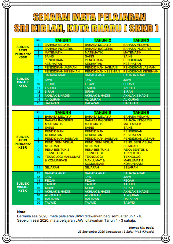 SENARAI MATA PELAJARAN